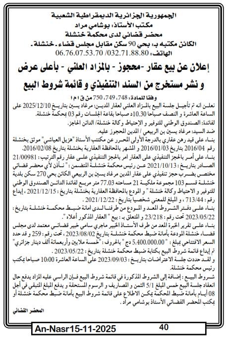 Il sera procédé à la vente au plus offrant et dernier enchérisseur le :