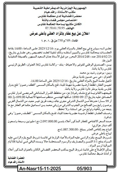 | Paru dans le journal : النصر | |
