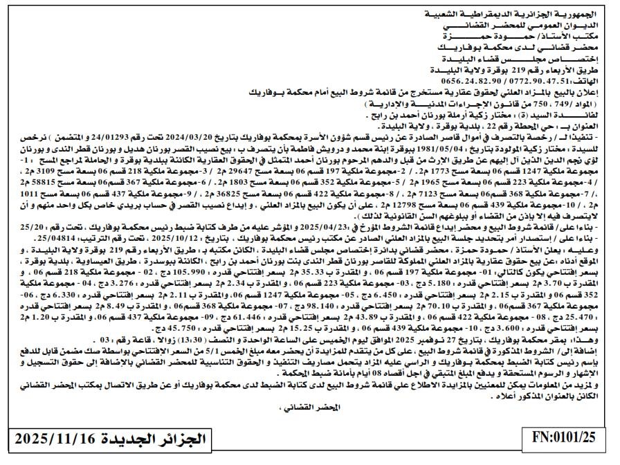 Il sera procédé à la vente au plus offrant et dernier enchérisseur le :