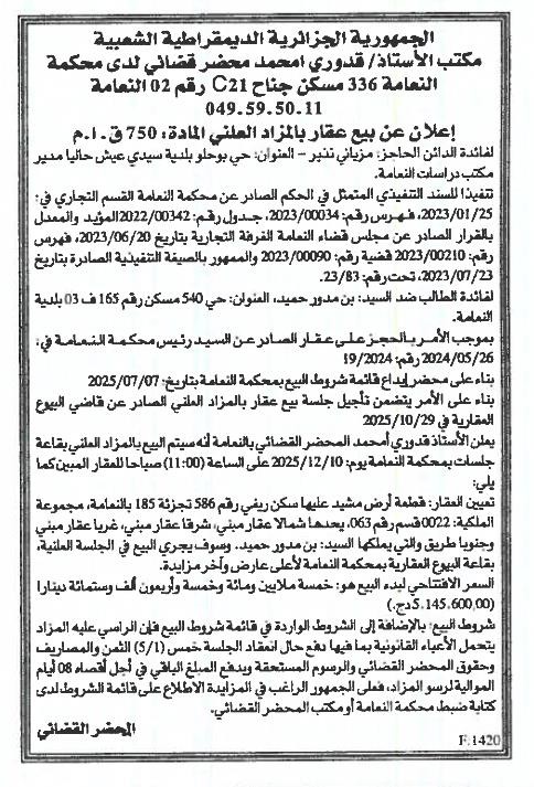 Il sera procédé à la vente au plus offrant et dernier enchérisseur le :