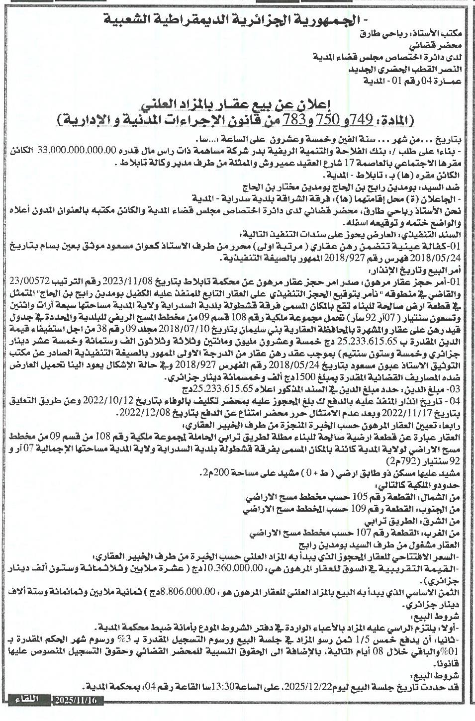 Il sera procédé à la vente au plus offrant et dernier enchérisseur le :