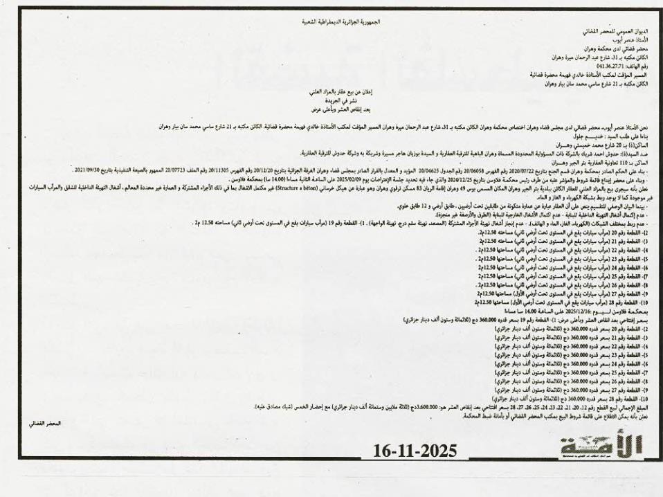 Il sera procédé à la vente au plus offrant et dernier enchérisseur le : 16/12/2025';