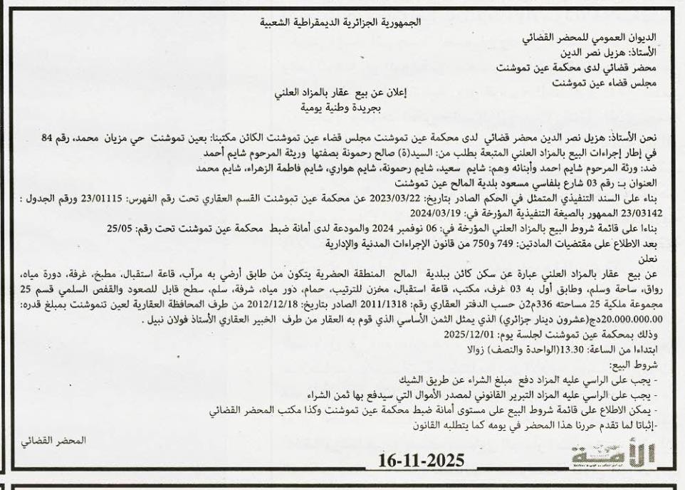 | Paru dans le journal : الامة العربية | |