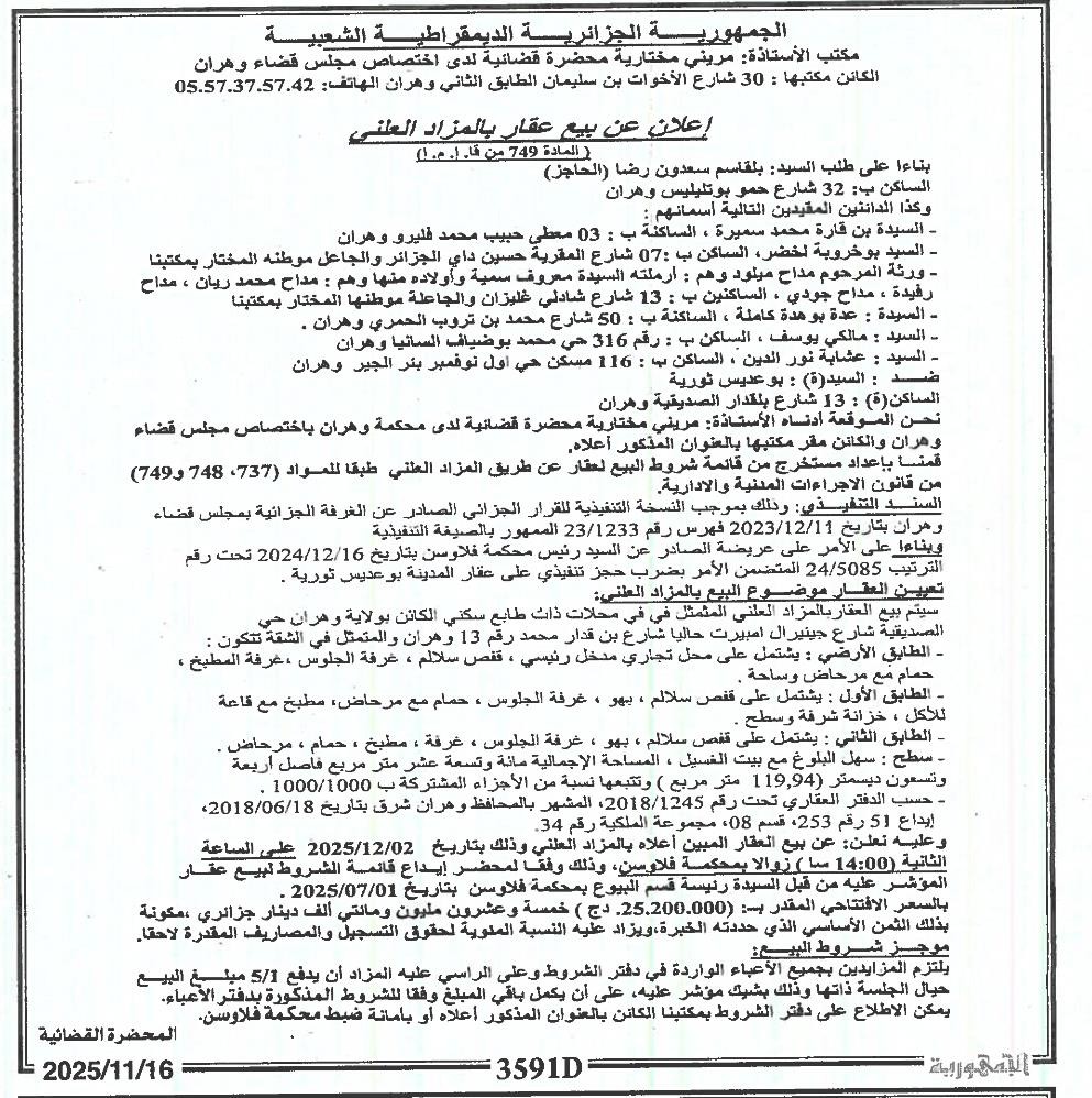 Il sera procédé à la vente au plus offrant et dernier enchérisseur le :
