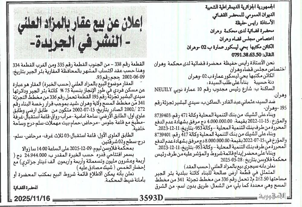 Il sera procédé à la vente au plus offrant et dernier enchérisseur le :