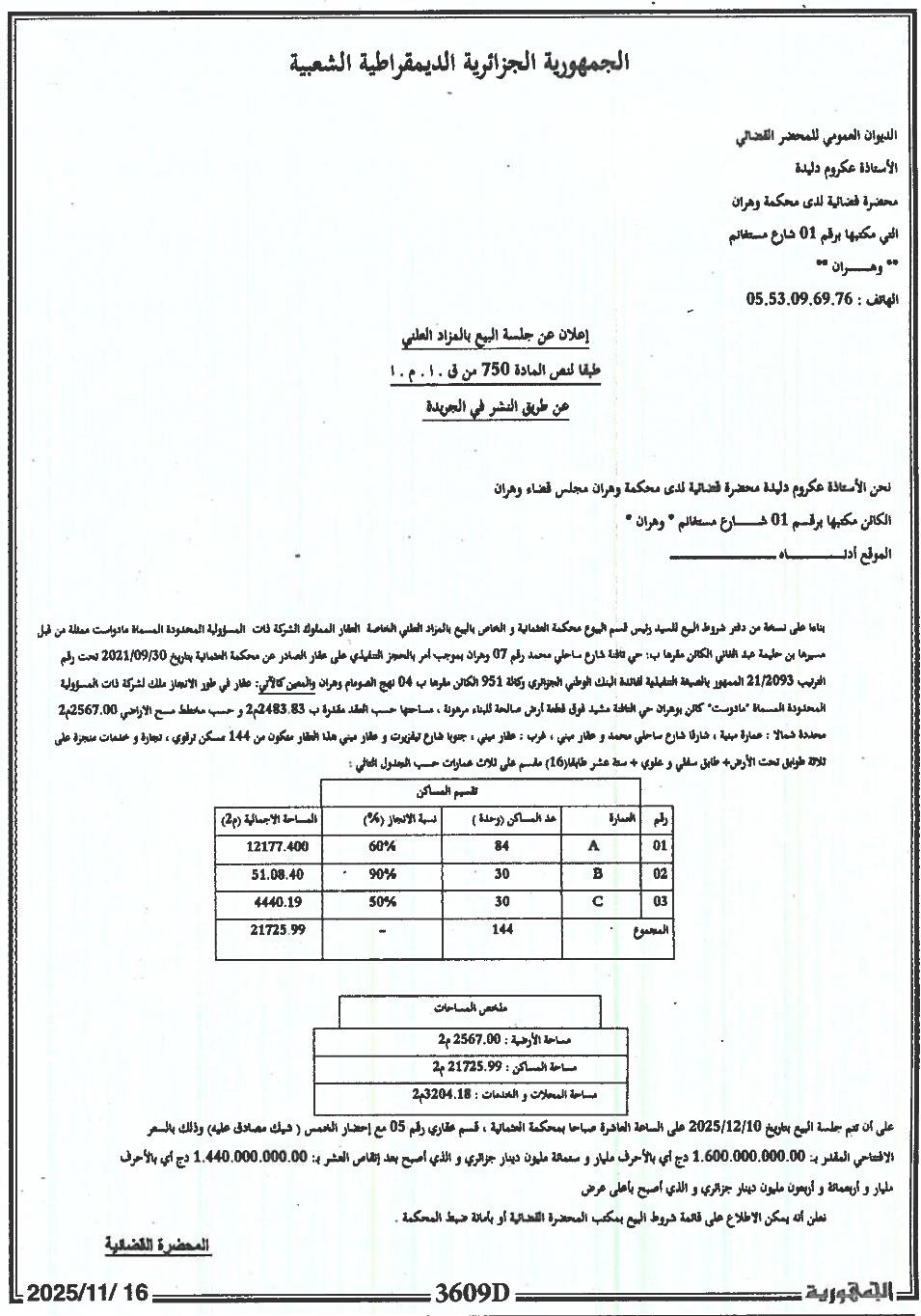 Il sera procédé à la vente au plus offrant et dernier enchérisseur le :