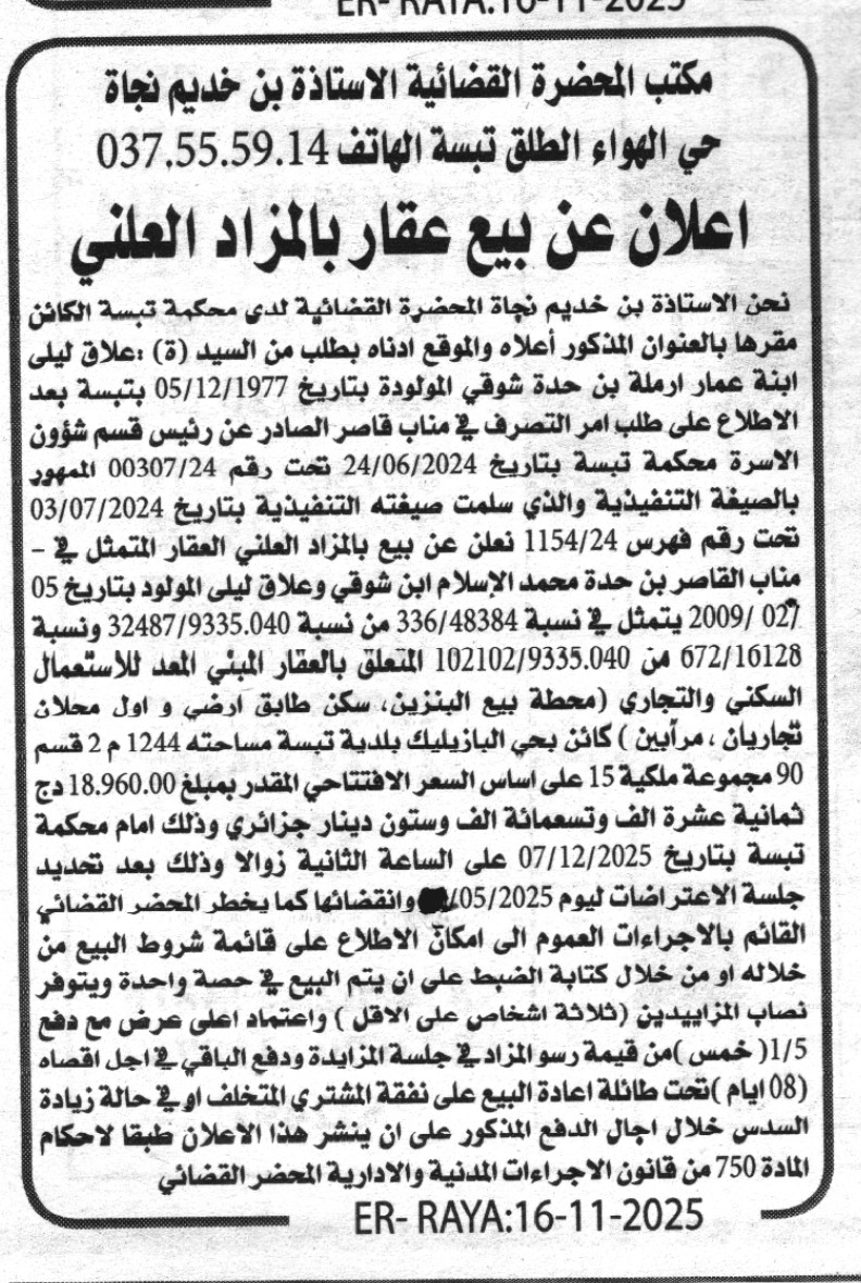 Il sera procédé à la vente au plus offrant et dernier enchérisseur le :