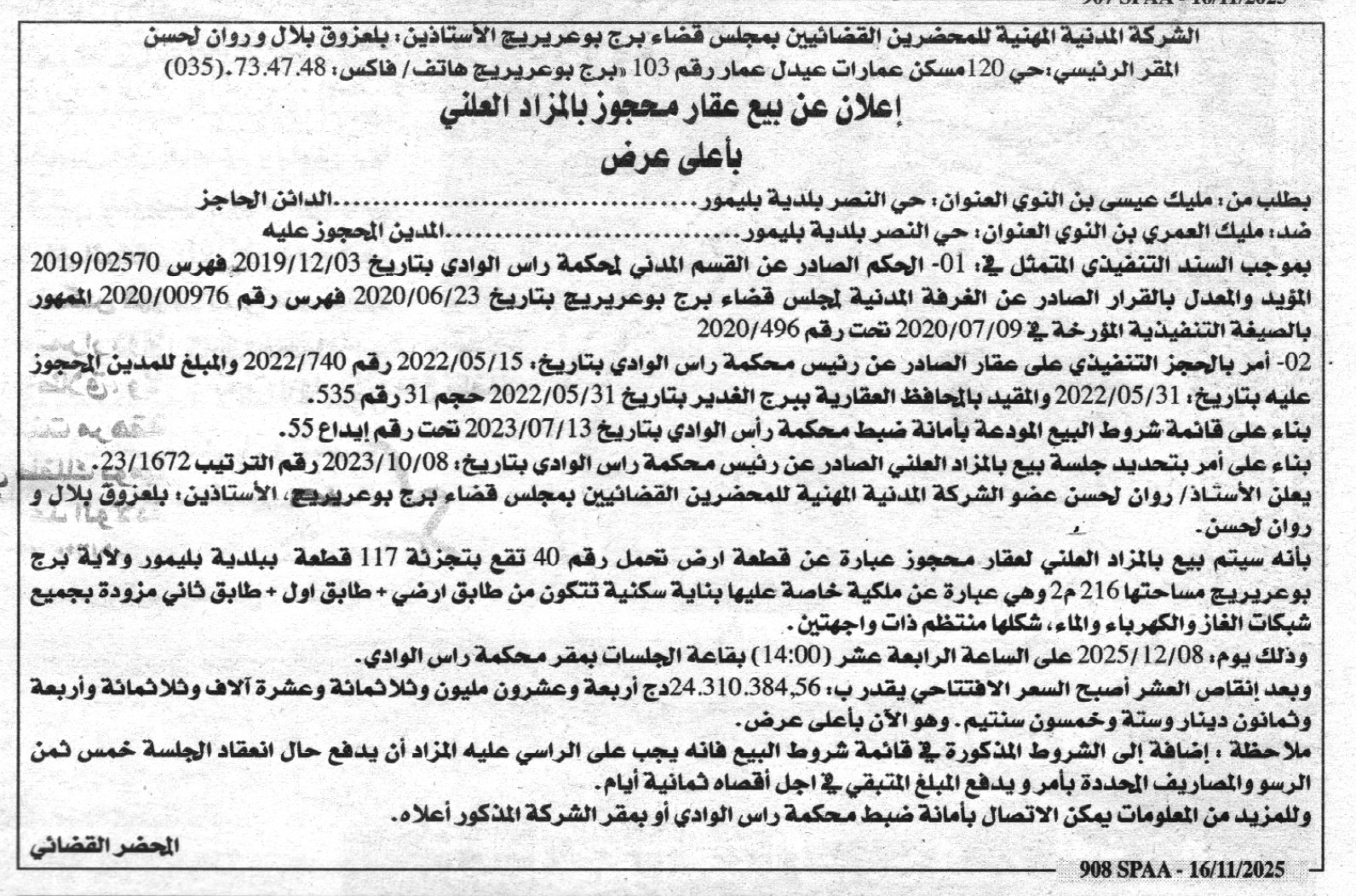 Il sera procédé à la vente au plus offrant et dernier enchérisseur le :