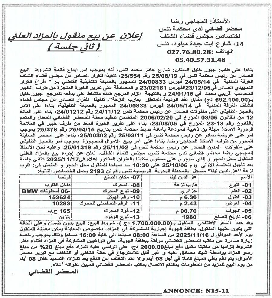 Il sera procédé à la vente au plus offrant et dernier enchérisseur le :