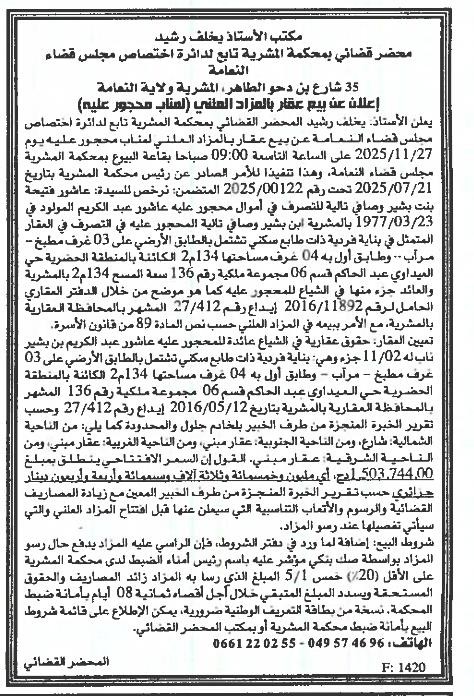 Il sera procédé à la vente au plus offrant et dernier enchérisseur le :