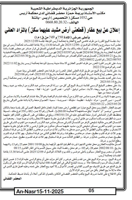 | Paru dans le journal : النصر | |