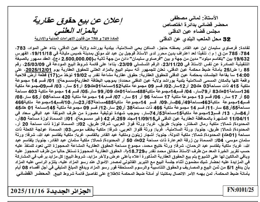 | Paru dans le journal : الجزائر الجديدة | |