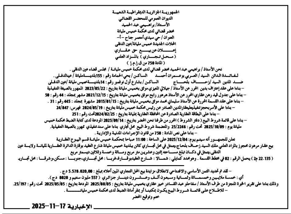 Il sera procédé à la vente au plus offrant et dernier enchérisseur le :