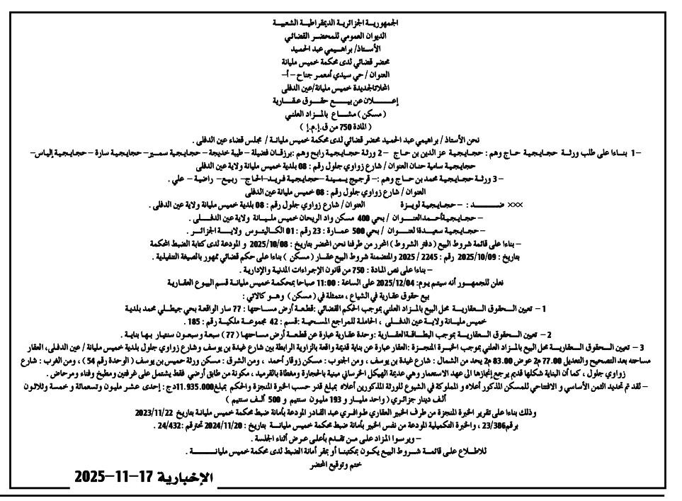 Il sera procédé à la vente au plus offrant et dernier enchérisseur le :