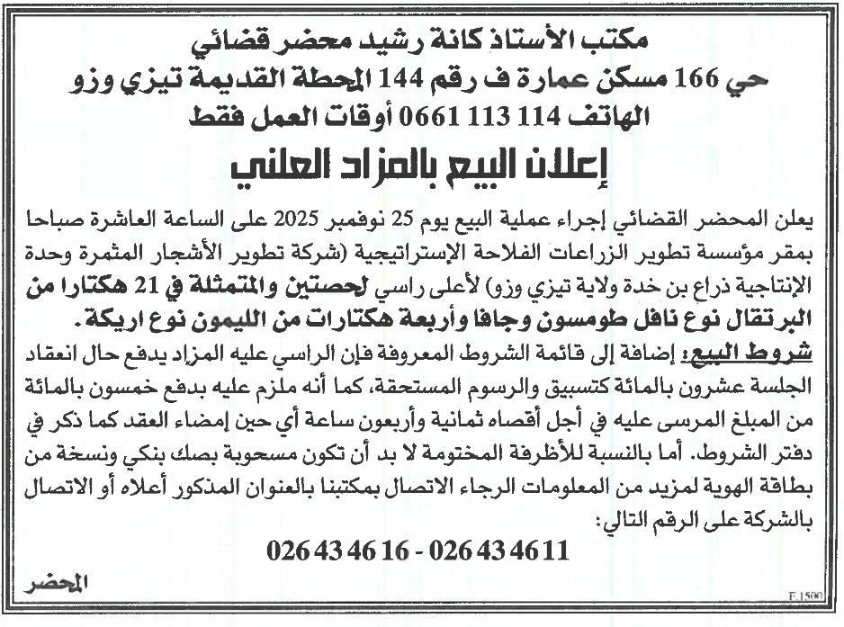Il sera procédé à la vente au plus offrant et dernier enchérisseur le :