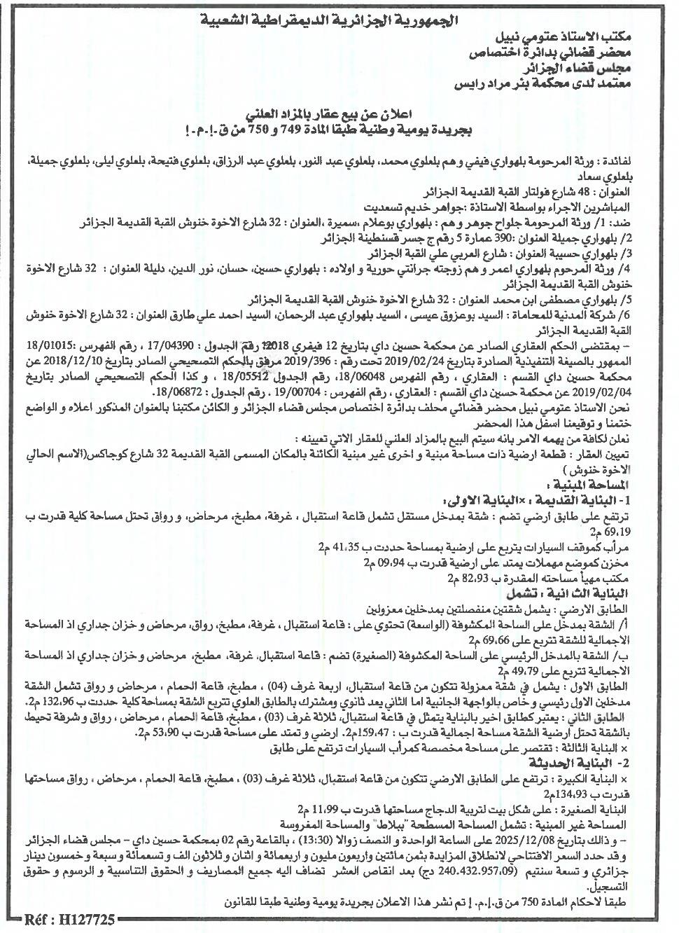 Il sera procédé à la vente au plus offrant et dernier enchérisseur le :