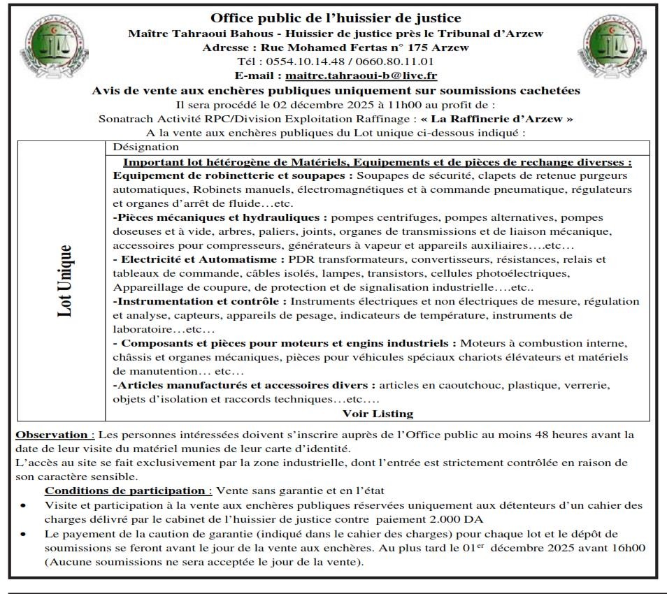 Il sera procédé à la vente au plus offrant et dernier enchérisseur le :