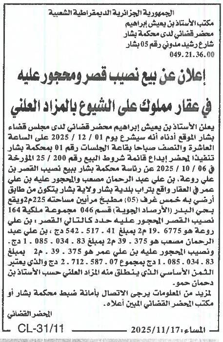 Il sera procédé à la vente au plus offrant et dernier enchérisseur le :