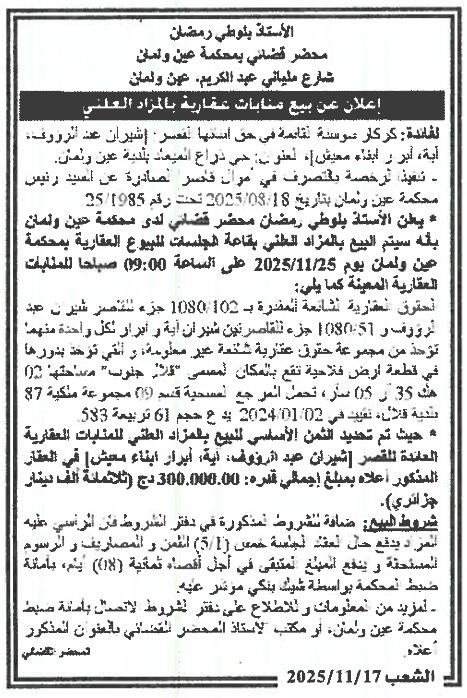 Il sera procédé à la vente au plus offrant et dernier enchérisseur le :