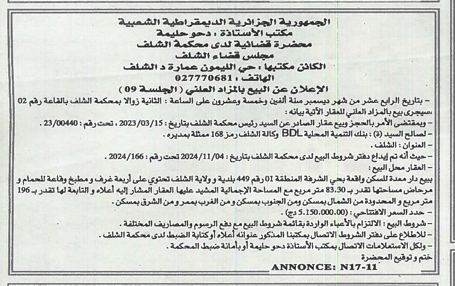 Il sera procédé à la vente au plus offrant et dernier enchérisseur le :
