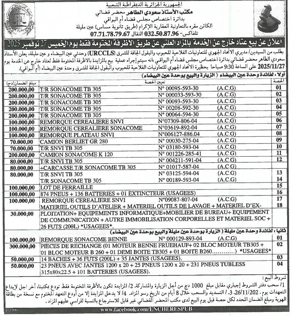 Il sera procédé à la vente au plus offrant et dernier enchérisseur le :