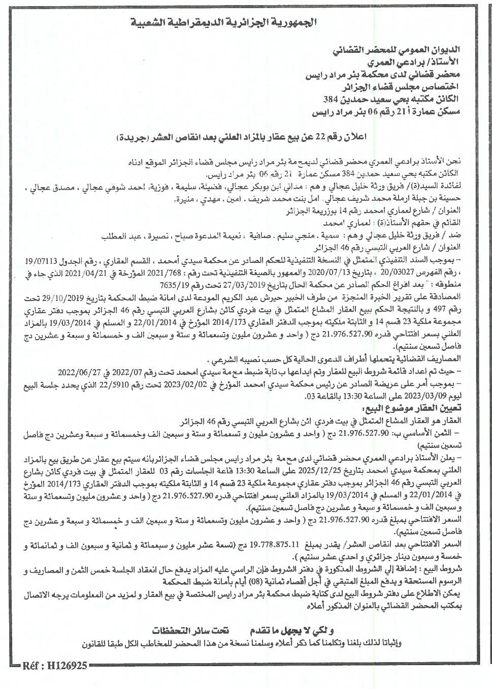 Il sera procédé à la vente au plus offrant et dernier enchérisseur le :