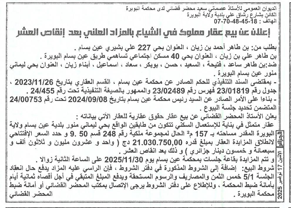 Il sera procédé à la vente au plus offrant et dernier enchérisseur le :