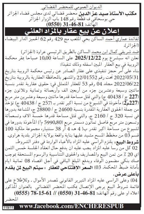 Il sera procédé à la vente au plus offrant et dernier enchérisseur le :