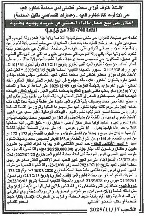 Il sera procédé à la vente au plus offrant et dernier enchérisseur le :