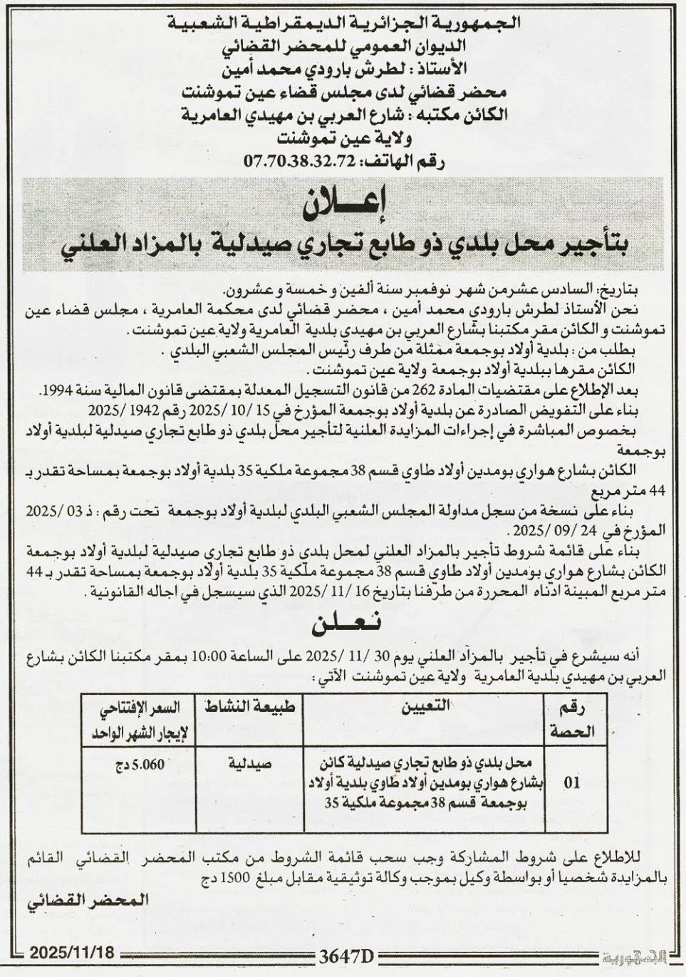 Il sera procédé à la vente au plus offrant et dernier enchérisseur le :