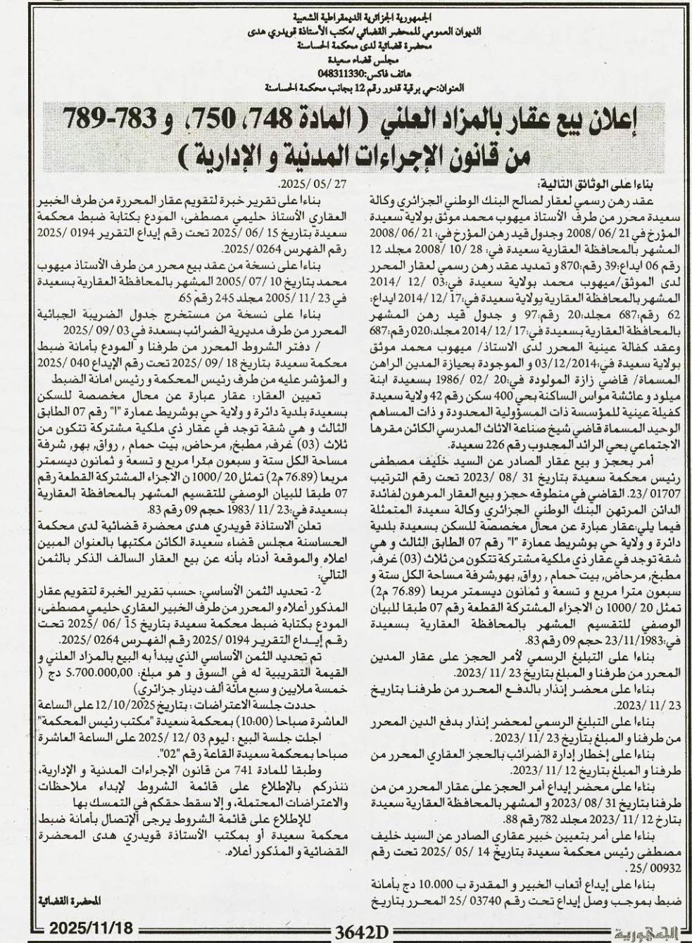 Il sera procédé à la vente au plus offrant et dernier enchérisseur le :