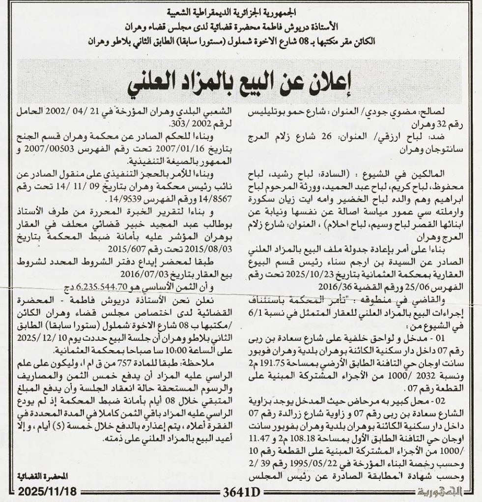 Il sera procédé à la vente au plus offrant et dernier enchérisseur le :
