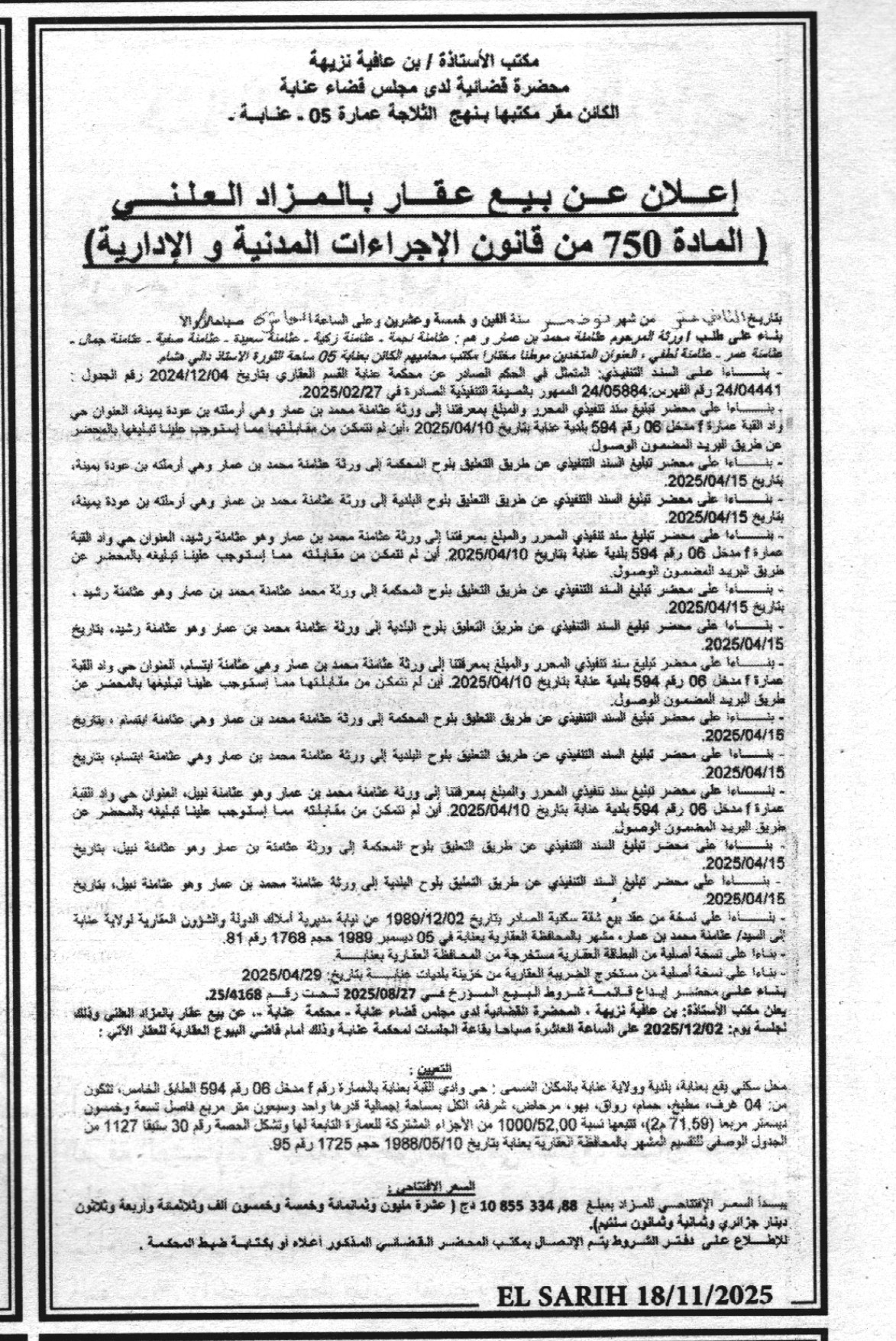 Il sera procédé à la vente au plus offrant et dernier enchérisseur le :