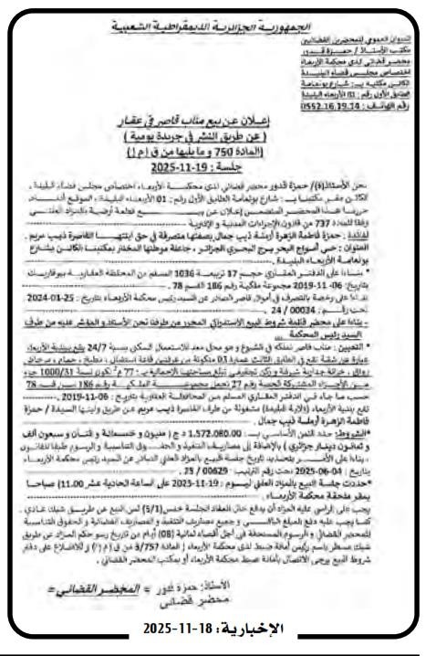 | Paru dans le journal : الإخبارية | |