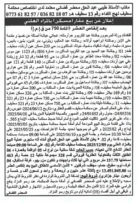 Il sera procédé à la vente au plus offrant et dernier enchérisseur le :