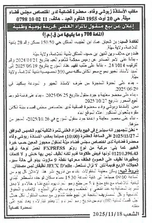 Il sera procédé à la vente au plus offrant et dernier enchérisseur le :