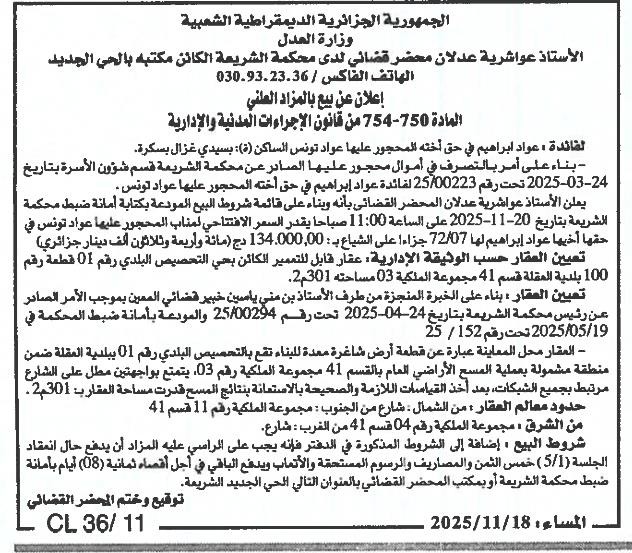 Il sera procédé à la vente au plus offrant et dernier enchérisseur le :