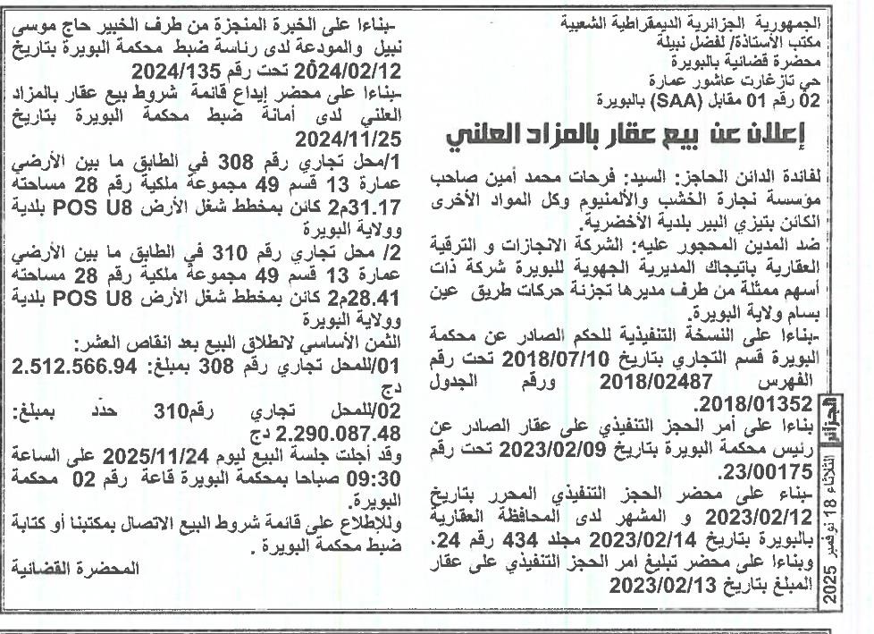Il sera procédé à la vente au plus offrant et dernier enchérisseur le :