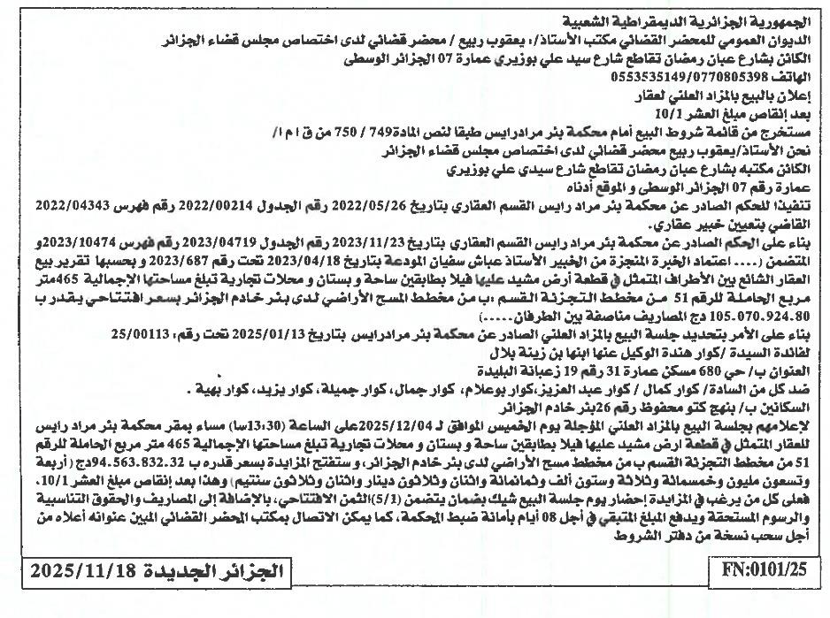 Il sera procédé à la vente au plus offrant et dernier enchérisseur le :
