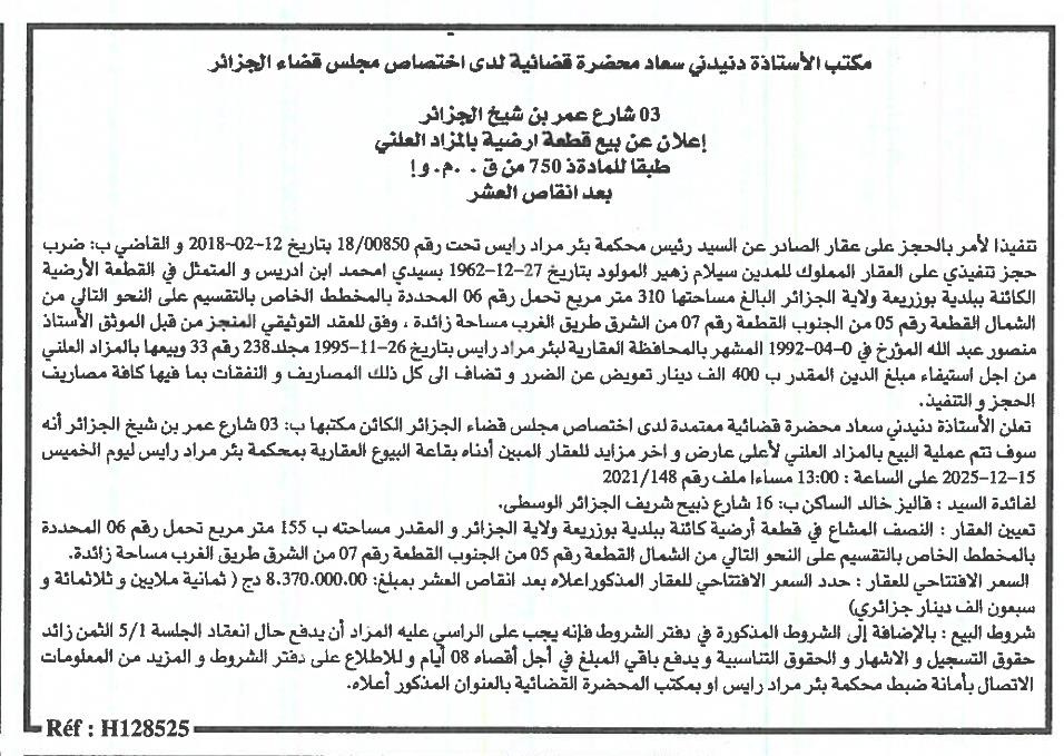 Il sera procédé à la vente au plus offrant et dernier enchérisseur le :