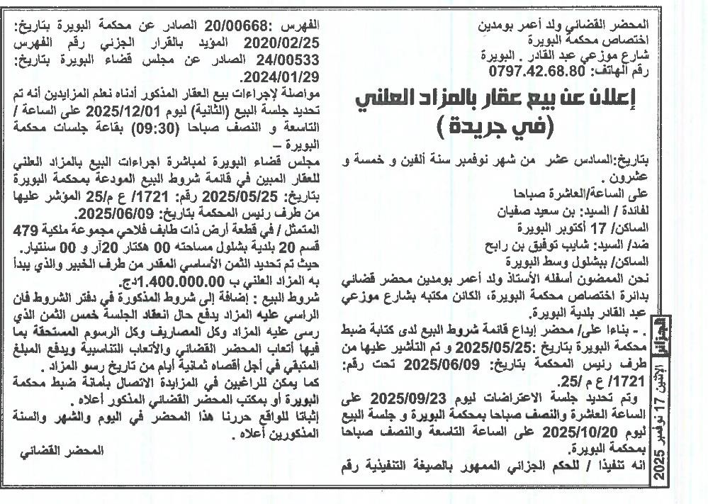 Il sera procédé à la vente au plus offrant et dernier enchérisseur le :