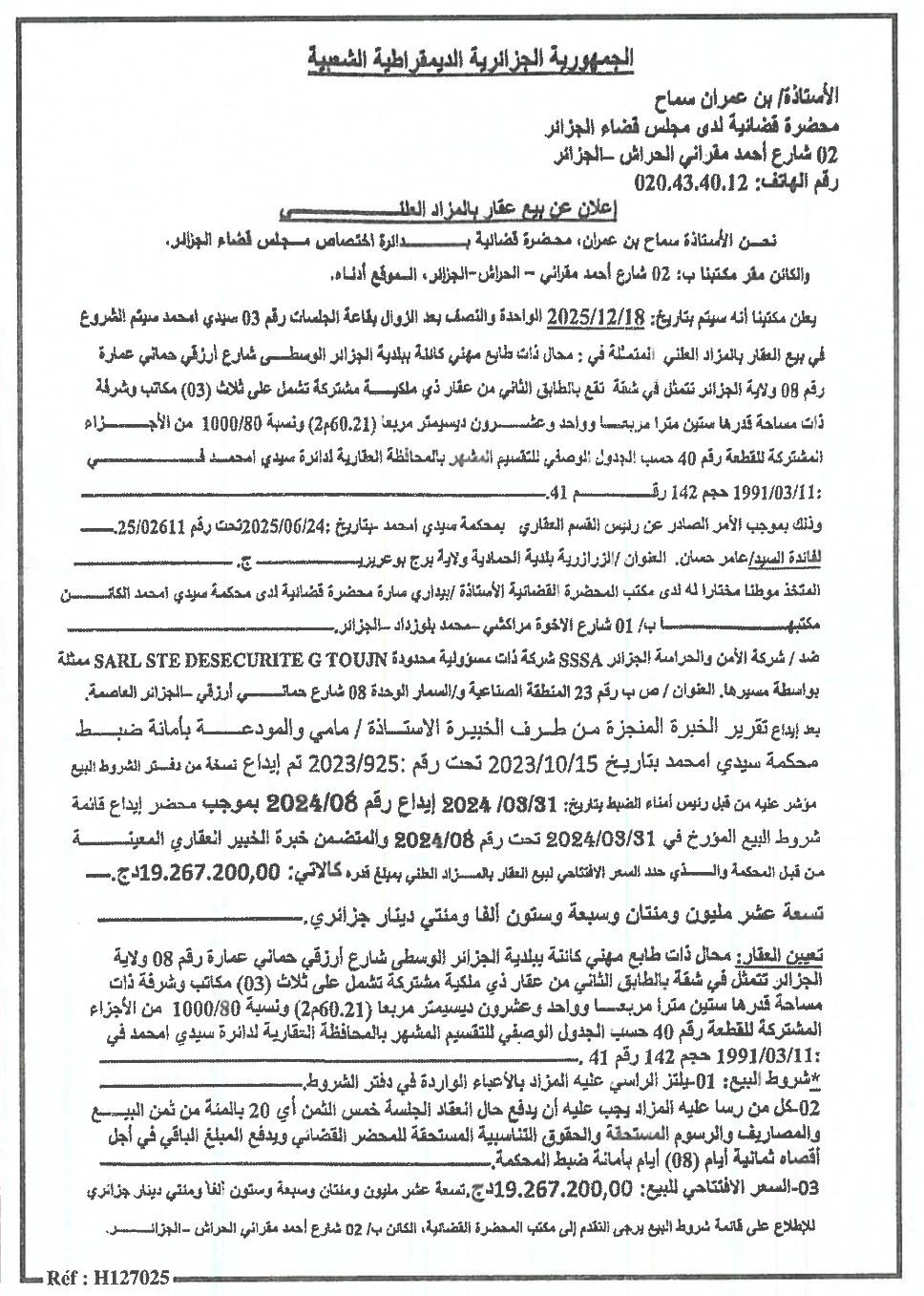 Il sera procédé à la vente au plus offrant et dernier enchérisseur le :