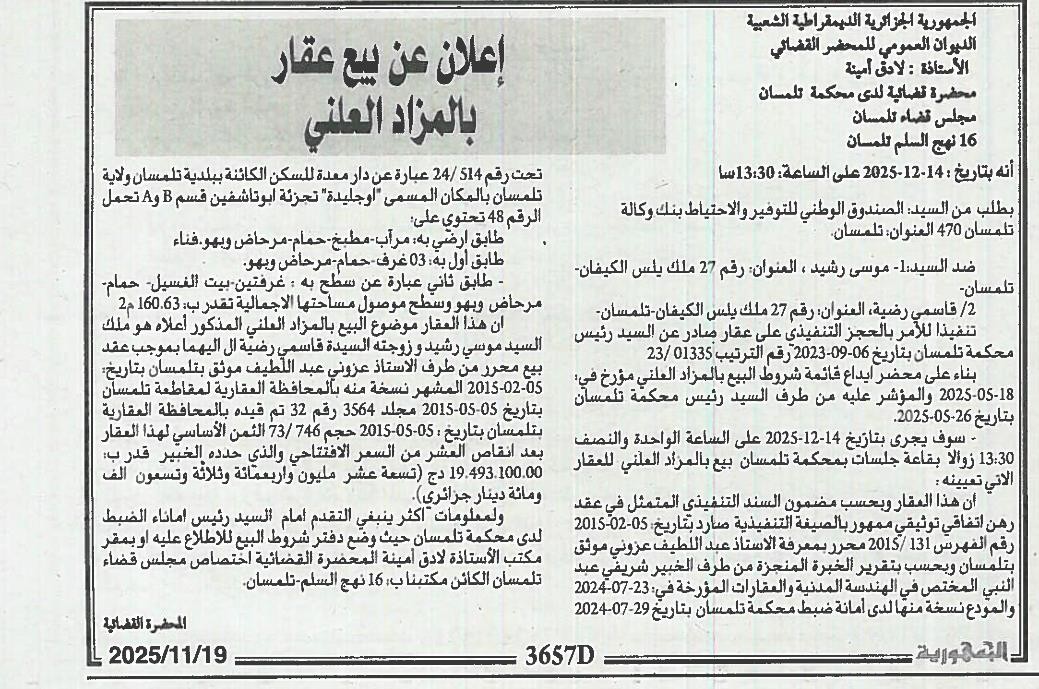 Il sera procédé à la vente au plus offrant et dernier enchérisseur le :