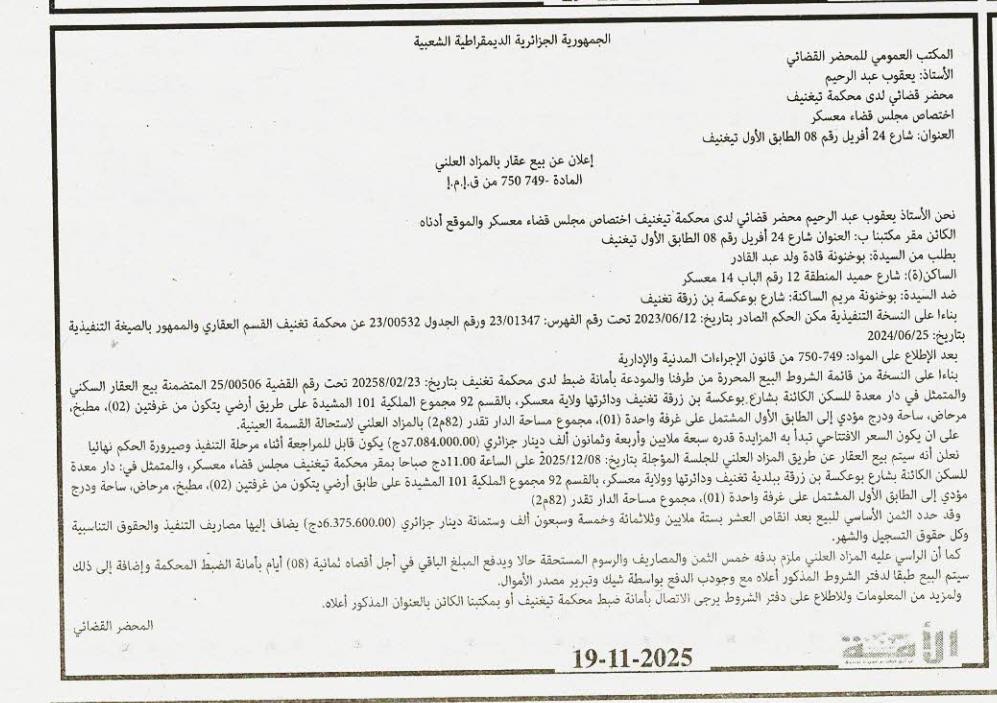 Il sera procédé à la vente au plus offrant et dernier enchérisseur le :