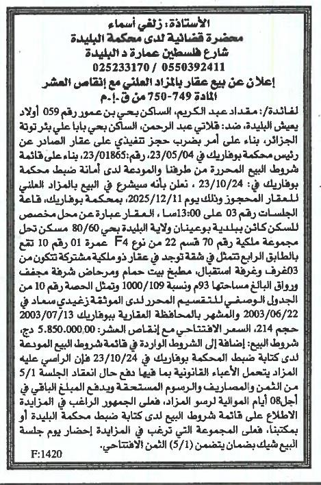 Il sera procédé à la vente au plus offrant et dernier enchérisseur le :