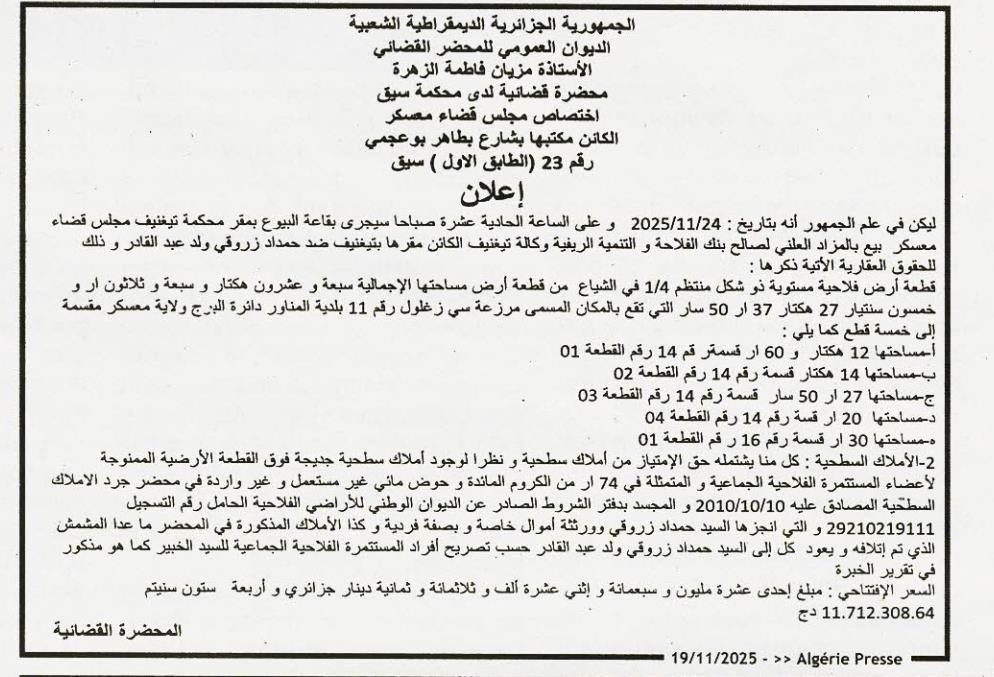 Il sera procédé à la vente au plus offrant et dernier enchérisseur le :
