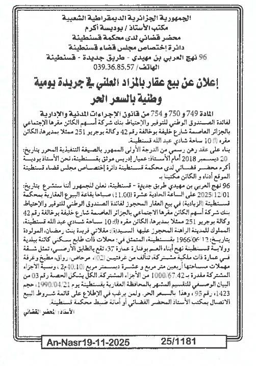 Il sera procédé à la vente au plus offrant et dernier enchérisseur le :