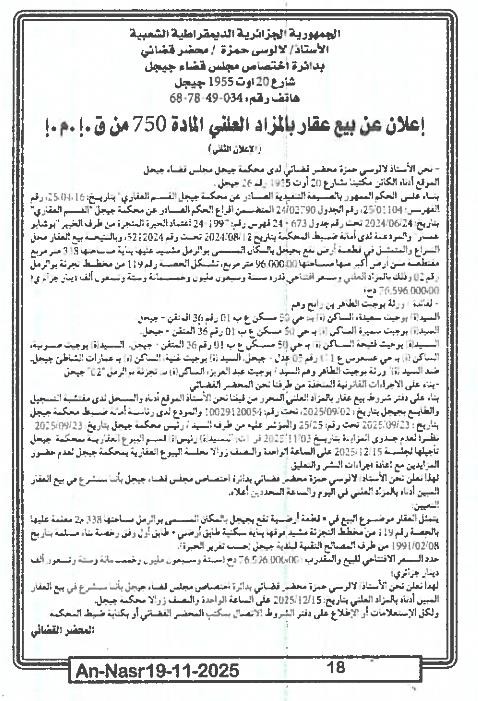 Il sera procédé à la vente au plus offrant et dernier enchérisseur le :
