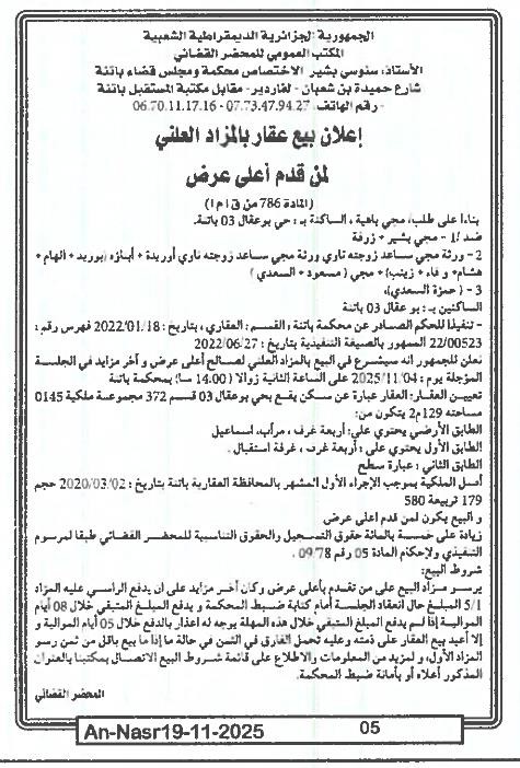 | Paru dans le journal : النصر | |