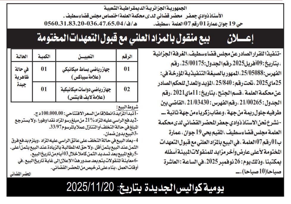 Il sera procédé à la vente au plus offrant et dernier enchérisseur le :
